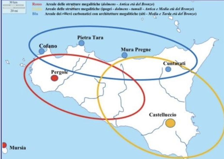 Il fenomeno megalitico siciliano resta di difficile e immediata comprensione, nella maggior parte dei casi, la forma megalitica è il risultato di adattamenti alle condizioni morfologiche e litiche dei diversi luoghi e delle diverse facies. La sua espressione, in sintesi è valutabile in tre grandi Macro aree con caratteristiche e datazioni proprie, una prima ad Ovest, nelle zone del Fiume Bèlice, una seconda ad Est, individuabile al centro tra il fiume Platani e fino al tavolato degli iblei, una terza a Nord, individuabile nei siti costieri dei rilievi carbonatici tirreni.