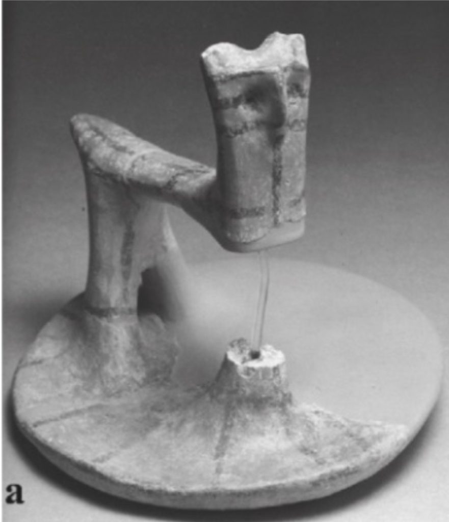 Recentemente, infatti, Rosalba Panvini4 ha messo in relazione un bacino, a piede cavo forato e vasca costolata a forma di croce5, con una particolare classe ceramica minoica, studiata da Simona Todaro e Laura Maniscalco6, attestata a Festòs (Creta) tra la metà del III millennio e il primo quarto del II millennio a.C., forse usata nella produzione di prodotti caseari (fig. 2).
