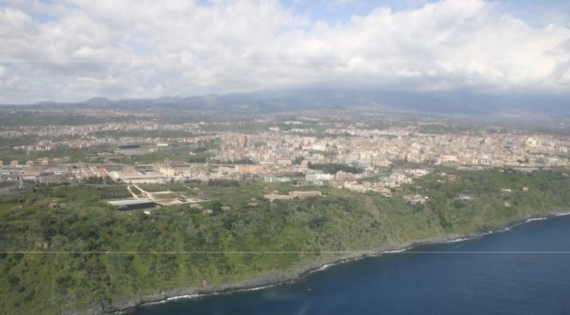 Veduta aerea da est della scarpata di Timpa di Acireale (altezza=120 m)