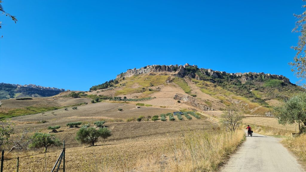 Si passa così dal mondo virtuale a quello reale dei paesaggi siciliani dell’entroterra senza nessuna altra intermediazione. Eppure, tutto funziona alla perfezione. Ci sono gli esercizi convenzionati per il pernottamento e i posti tappa in cui presentare la credenziale per il timbro sul pass, le strutture tecniche per noleggiare le bici e per l’assistenza. In tutto servono 7 giorni, volendo seguire le indicazioni dell’ideatore. I ciclisti più allenati possono impiegare anche meno, ma è un peccato andare di corsa superando i circa 70 chilometri giornalieri consigliati.